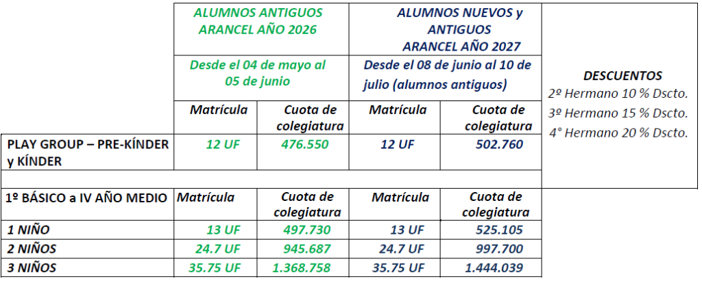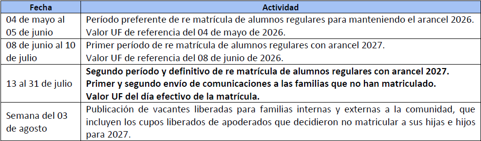 Con la finalidad de organizar el próximo año escolar 2027 es que compartimos con ustedes información y fechas relevantes del proceso: